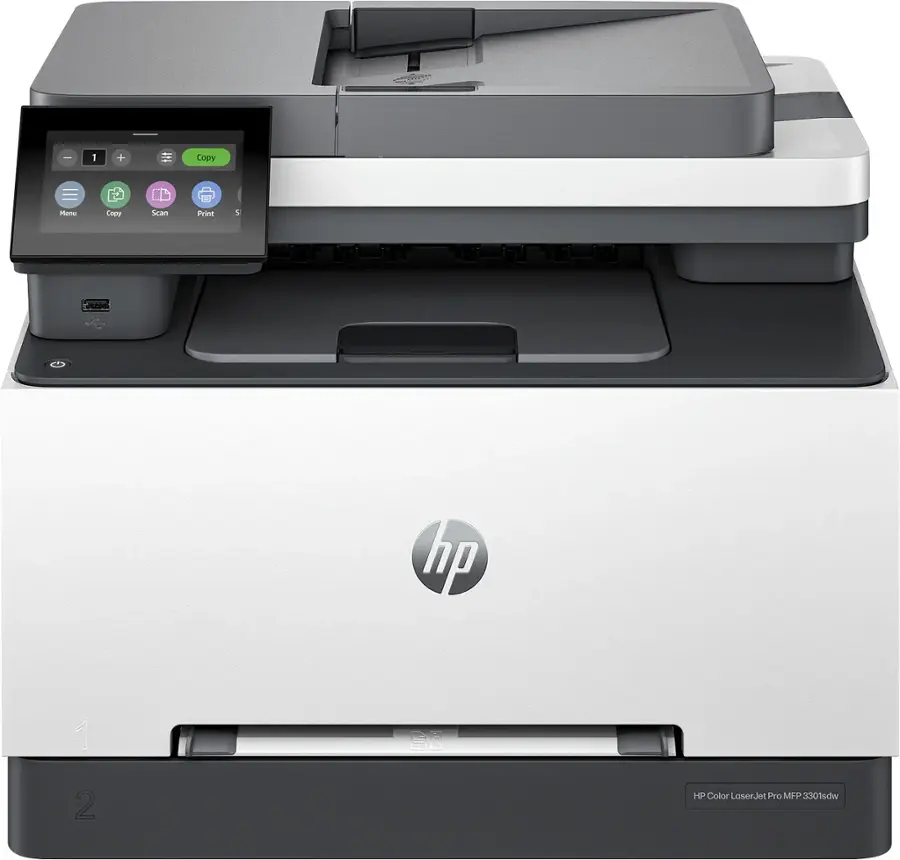 Transform your small office or home setup with the HP Color LaserJet Pro MFP 3301sdw, a stylish white all-in-one laser printer engineered for teams craving speed, vivid colors, and effortless multifunctionality. From HP, the world’s leading printer brand, this wireless powerhouse excels in print, scan, and copy tasks, producing professional-grade documents with sharp text and eye-catching graphics that elevate proposals, reports, and presentations.